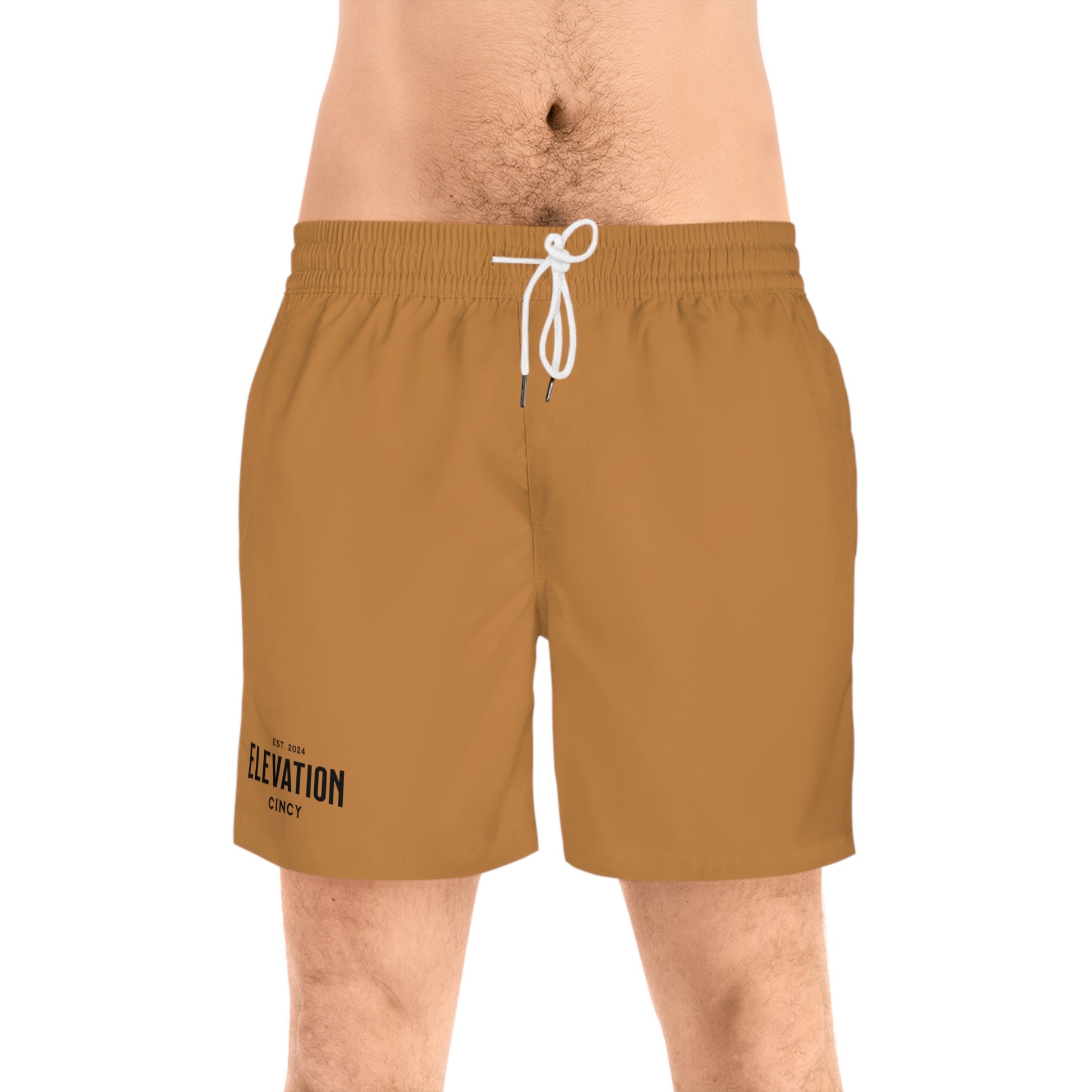 Made with 95% polyester and 5% spandex, it's the perfect blend for swimming and relaxing. Not only can you use these for swim, but as regular shorts. These mid-length shorts are lightweight, come with an inner mesh brief and a relaxed fit, because sunny days at the coast are all about lounging. Along with the choice between black or white drawstrings, these shorts also come with two side pockets for added practicality.